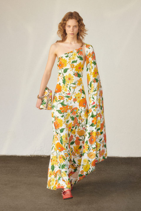 The collection, which is anchored by a fanciful, hand-drawn floral print, aims to create a “surrealist sanctuary in nature where Stella women can exist free from society’s expectations,” according to a press release. With halter dresses made of organic crinkled chiffon and one-shoulder pieces complete with dramatic, billowing sleeves, it’s safe to say you’ll be transported to another world — and we don’t think we’d ever want to leave.